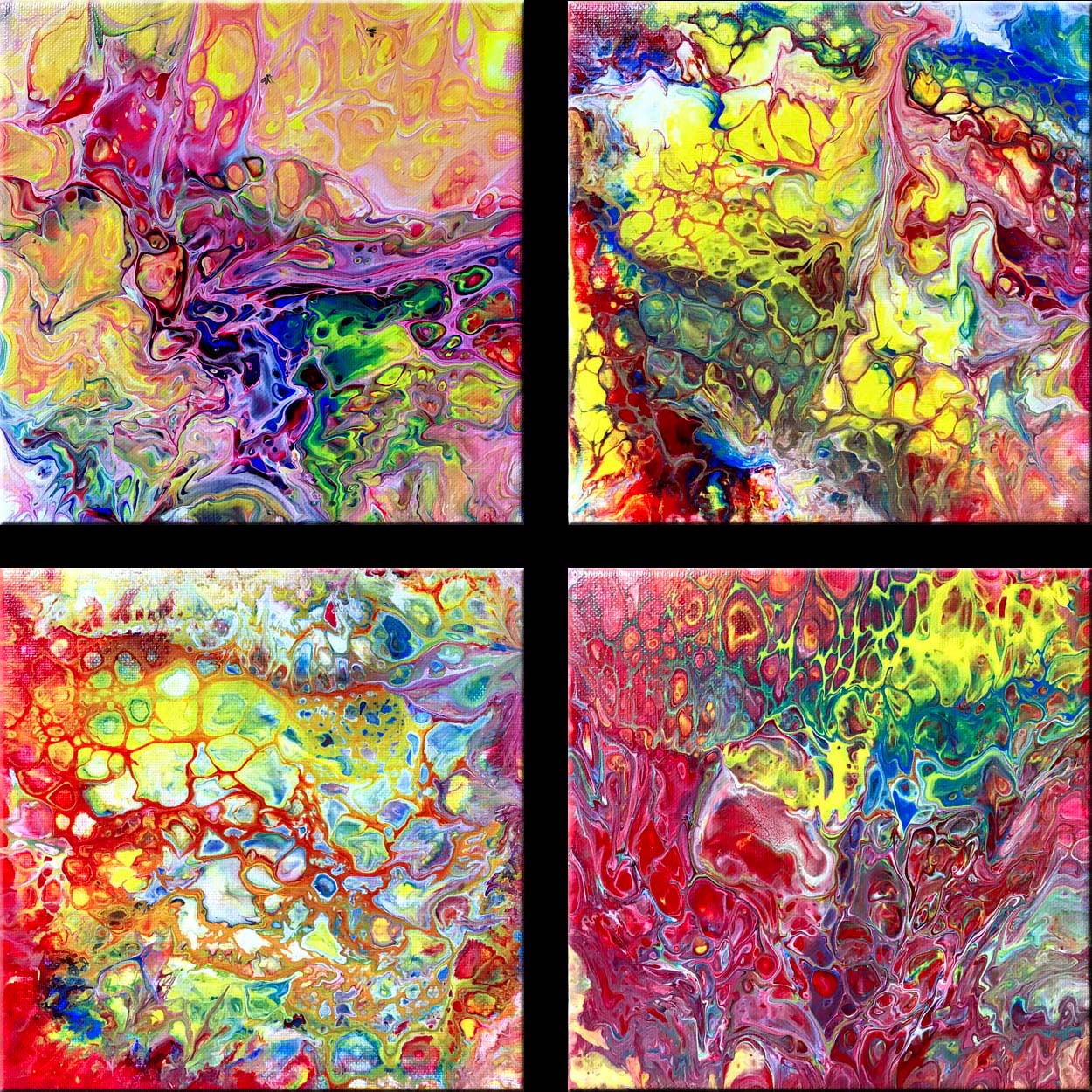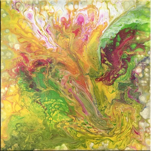 Wenn man den Duden oder Wikipedia fragt, wird man zum Thema Flowtismus aktuell noch keine Informationen bekommen. Was also ist Flowtismus? Der Begriff leitet sich ab vom englischen „flow„ – was soviel bedeutet wie fließen oder verlaufen aber auch „im Fluss sein“. Und genau darum geht es bei dieser Maltechnik, die auch Pouring genannt wird. Farben die auf der Leinwand fließen und verlaufen und dabei den Prozess des Werdens und der Veränderung zu beobachten. Das hat schon etwas sehr Meditatives und wenn man ES fließen lässt, kommt man oft von ganz alleine in den Flow.